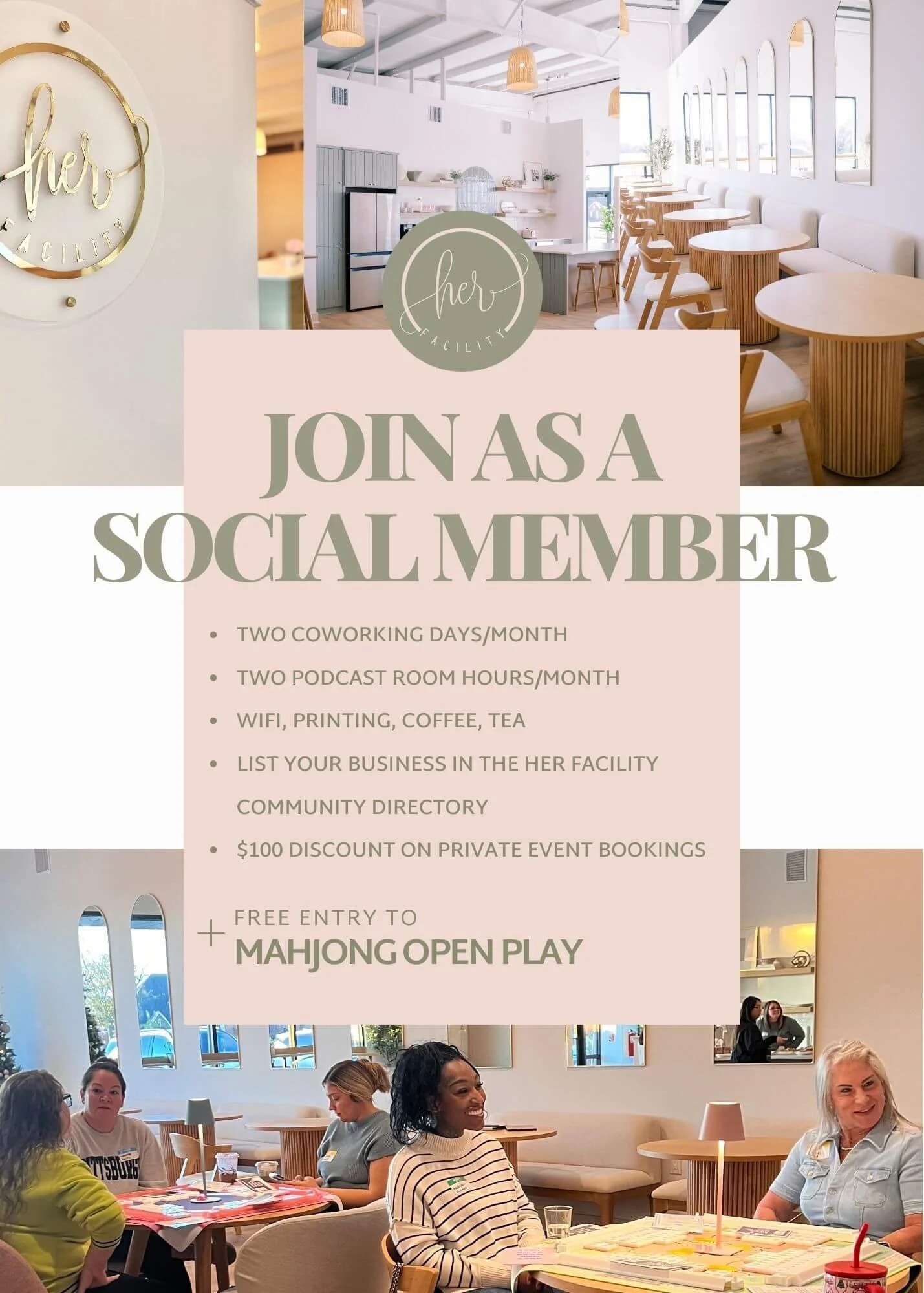 Through our partnership with Her Facility, we have helped cultivate engaging social events that encourage genuine connection - including guided mahjong play, beginner classes, themed social events, and other interactive experiences that allow women to step away from screens and connect face to face.